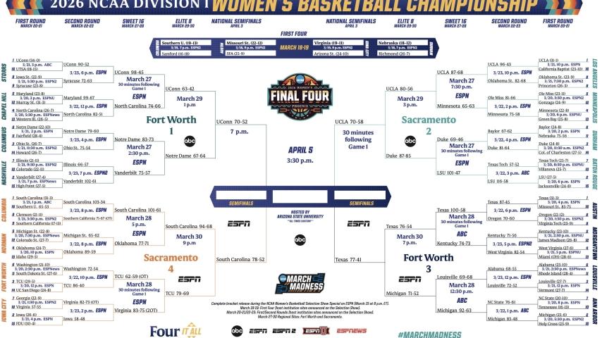 2026 NCAA women's basketball tournament: Bracket, schedule, scores