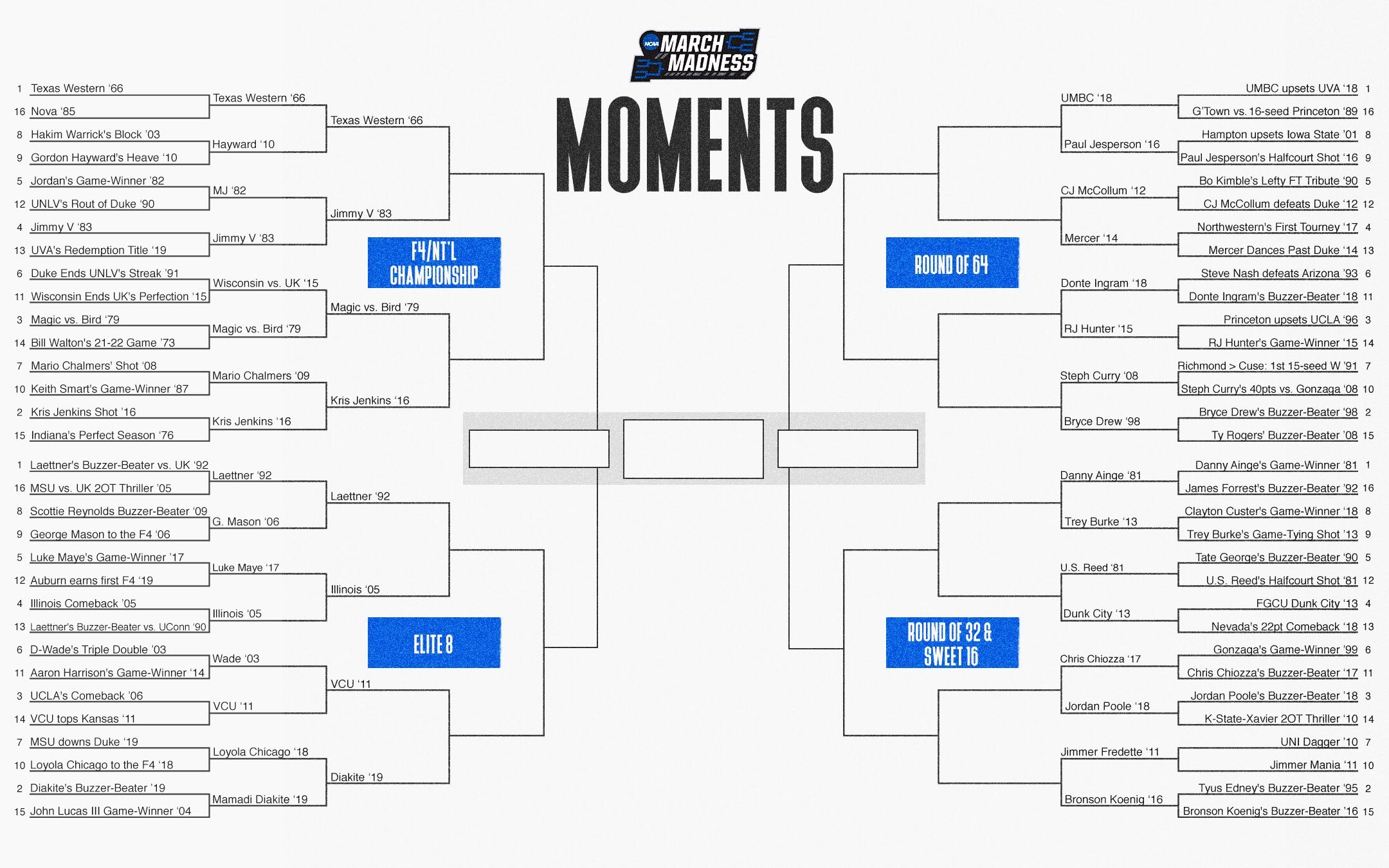 Get ready to vote for your favorite March Madness moments of all-time in the #MarchMadnessMoments bracket.