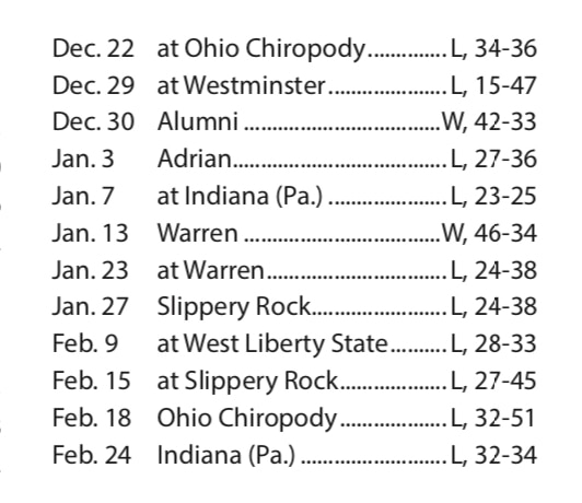 The following AP recap was published in the Pittsburgh Post-Gazette after West Liberty State's 33-28 win in Feb. 1933.