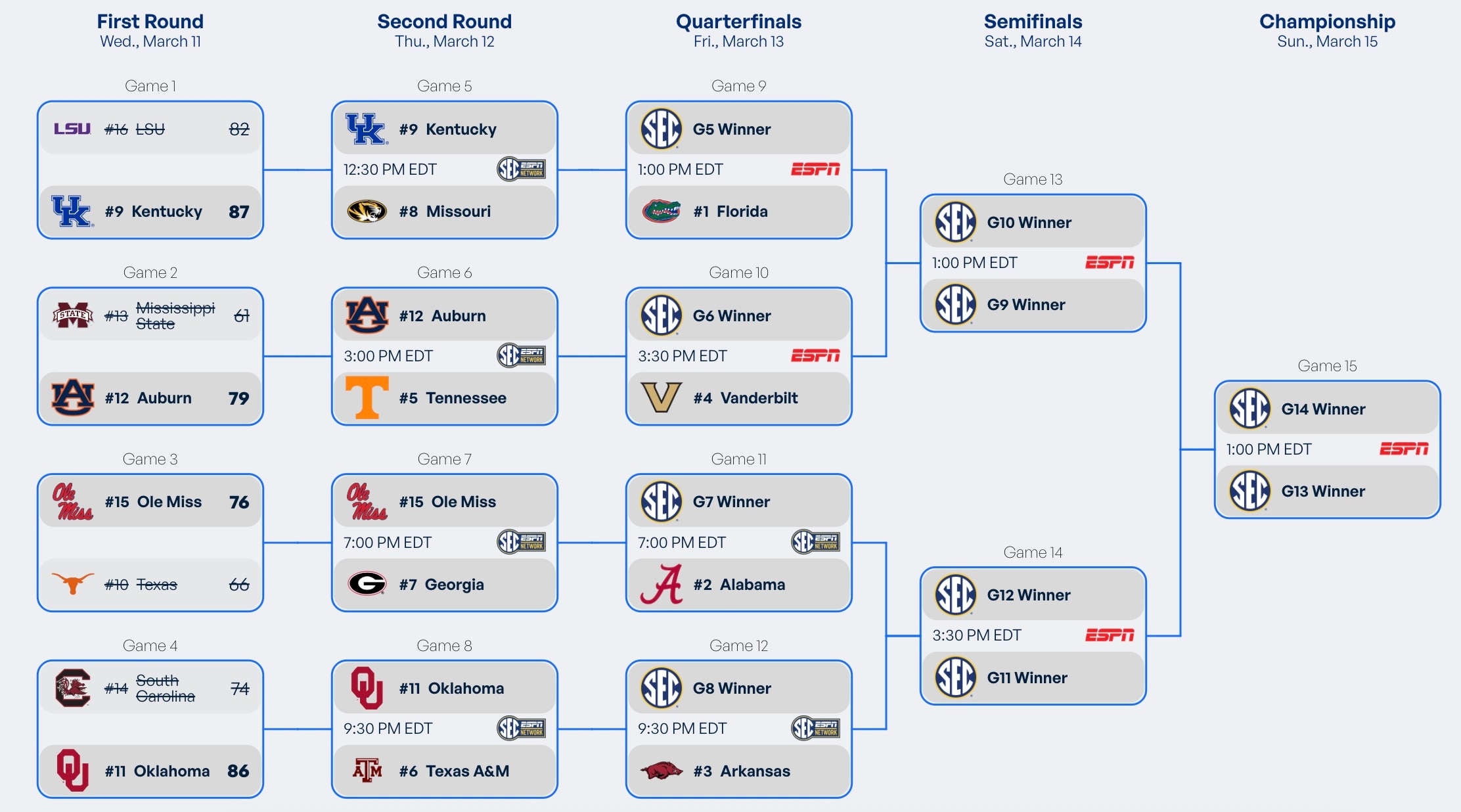 2026 SEC tournament schedule, scores