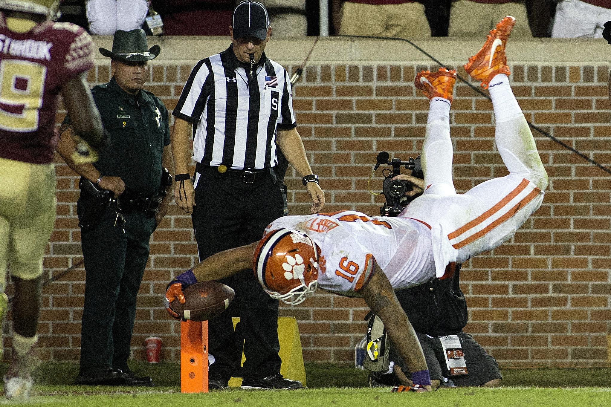 The 6-5 tight end was wide open on a busted coverage and caught the ball inside the 20-yard line with plenty of space in front of him. He charged toward the end zone, and when he was finally met by a Seminoles defender going low for the tackle at the 4-yard line, Leggett acrobatically dove with full extension over him and barely crossed the plane to put Clemson back on top.