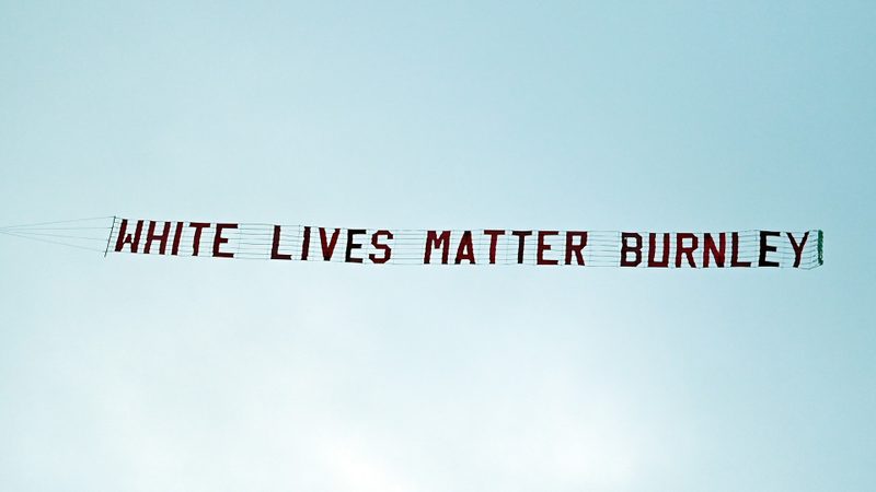 The banner reading "White lives matter Burnley" was seen shortly after all players and match officials had taken a knee in solidarity with the Black Lives Matter movement.