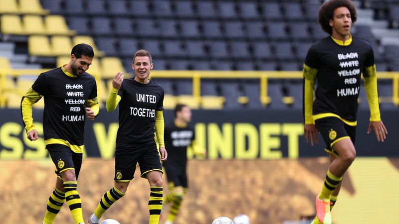 Borussia Dortmund and Hertha Berlin players were the latest to show their support for demonstrations across the USA and George Floyd, a black American who died in Minneapolis last month while being arrested by police officers, by taking a collective knee around the Signal Iduna Park centre circle before their match.