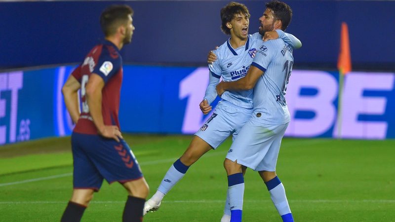 Portugal youngster Joao Felix scored twice as Atletico Madrid moved into the Champions League places with a 5-0 La Liga thrashing of Osasuna on Wednesday.