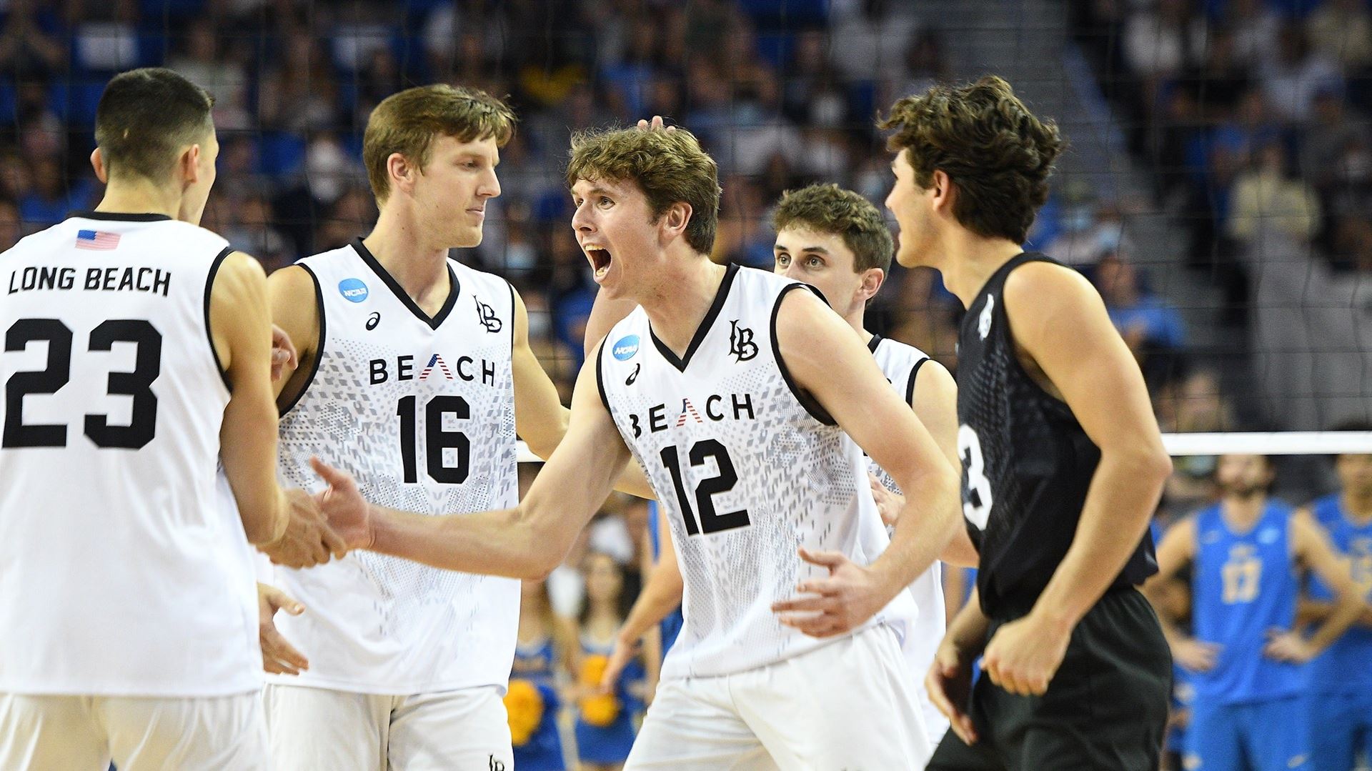 In the opening semifinal, Long Beach State topped UCLA by hitting .412 in the match, paced by Alex Nikolov's 20 kills on .405 hitting.