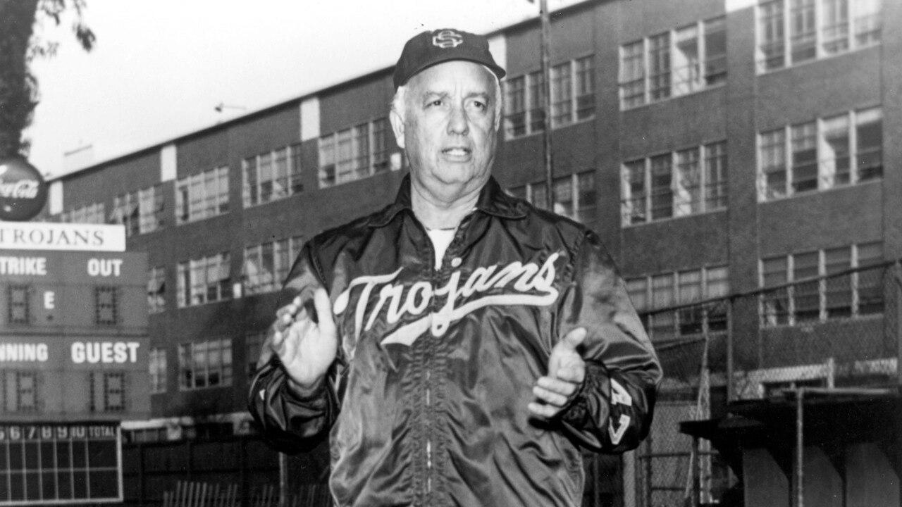 The late Rod Dedeaux won 11 national championships, 28 conference championships and 1,332 games at USC, making him the winningest coach in college baseball at the time of his retirement. He led the Trojans to five consecutive national titles in the '70s โ€“ no school has won more than two in a row since.
