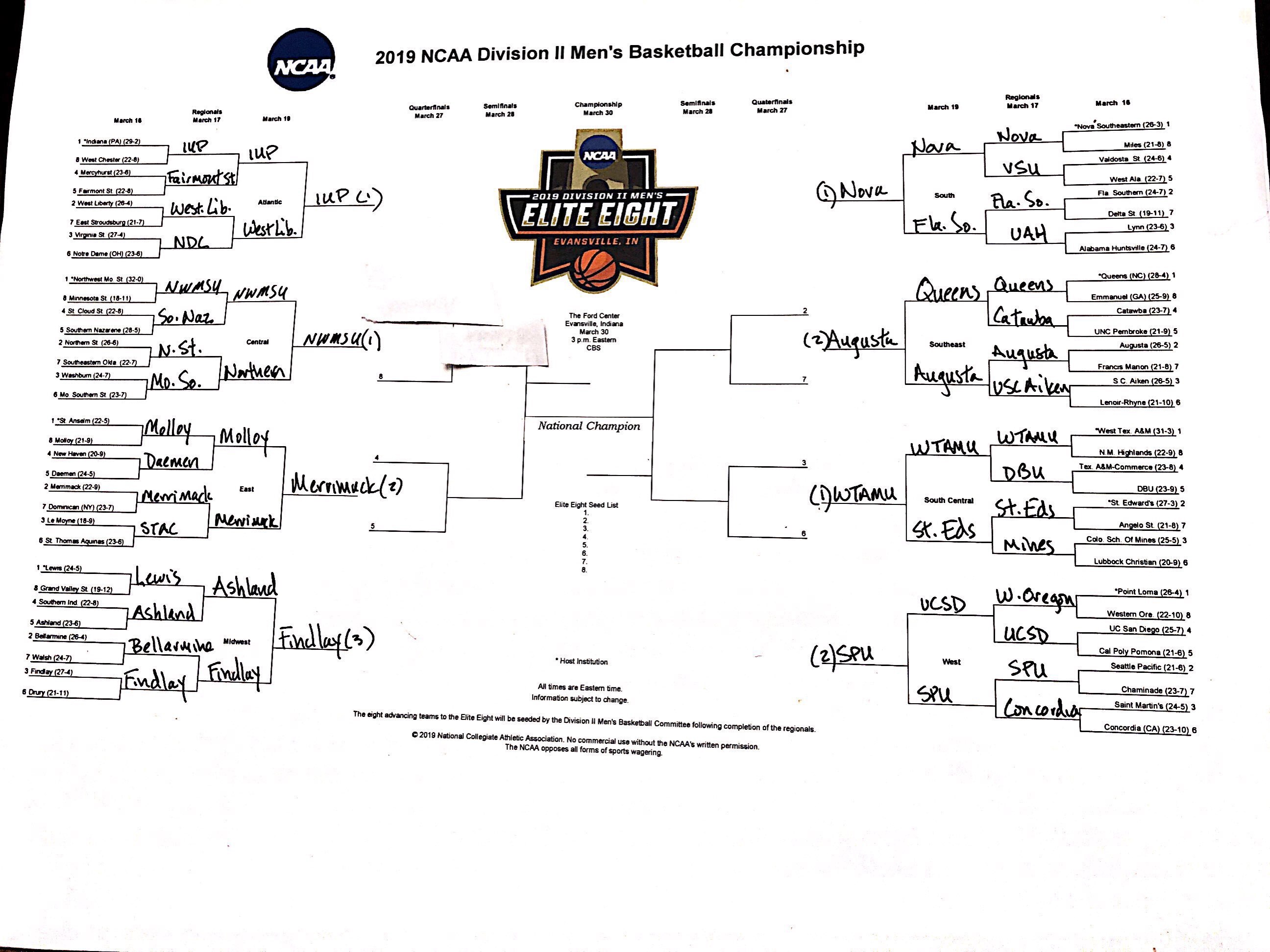 The 2019 DII men's basketball tournament bracket, predicted