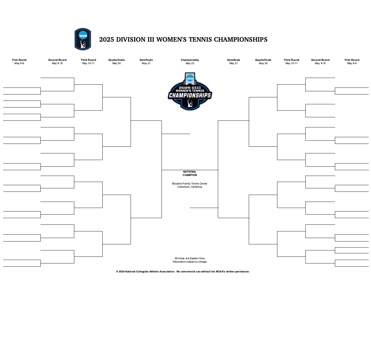 2025 NCAA DIII women's tennis individual (singles and doubles) championship schedule