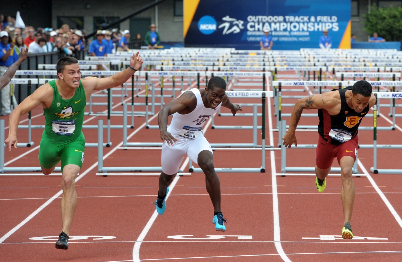 Devon Allen wins 110m hurdles at 2014 NCAA championships