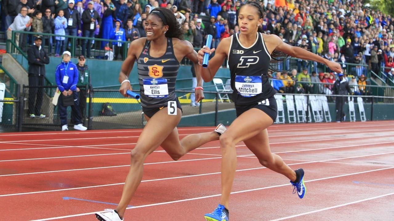 While Ellis never ran a third leg on any of those races, her ability to overcome adversity in the 2018 4x4 outdoor final gives me confidence that if placed on the third leg of the USC all-time relay, she could figure it out. She has an indoor 400 meter title under her belt too, so she clearly knows how to run a curve. I think Ellis can fit here as the third leg before handing off the baton to the anchor.